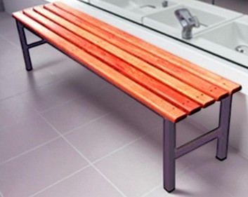 Banqueta 200x40x45. Estructura metálica perfil 30x30x2 mm. Pintura electro estática negra. Madera de 1″x3″ pulgadas de barniz poliuretano.