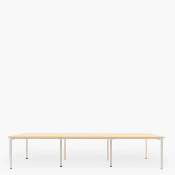 Escritorio tipo Bench para 6 personas, es el espacio de trabajo ideal para un equipo. Cuenta con cubiertas laminadas de alta presión en 24 mm y cantos de PVC de 2 mm. La estructura es de acero electro-pintado de 5×5 cm. Para más privacidad puedes añadir un separador opcional de aluminio o PVC.