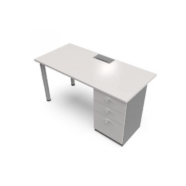 Características: Incluye perforación insertos metálicos. Pasacables plástica. Bases metálicas electro pintadas negras, cajonera pedestal, 2 cajones y 1 kardex.